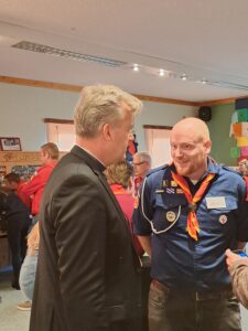 Scouting de Vundelaar bestaat 80 jaar. Begonnen op grond van de kerk nu fijne buren aan de Kerklaan te Twello. En zo werd de parochie uitgenodigd om bij de reünie op zondag 9 november 2025 aanwezig te zijn. Pastoor ten Have en afgevaardigden van de coördinatiegroep hebben de dank overgebracht voor de jarenlange fijne samenwerking. Tachtig jaar geleden begonnen en ook nu nog met bv de ondersteuning van de allerzielenviering (haag met fakkels).