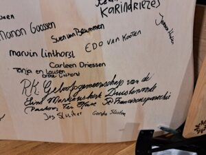 Een bloemetje en bijdrage op het grote bord zijn achtergebleven in het pand PIGIKA en we hopen samen op weg te gaan naar de 100 jaar.